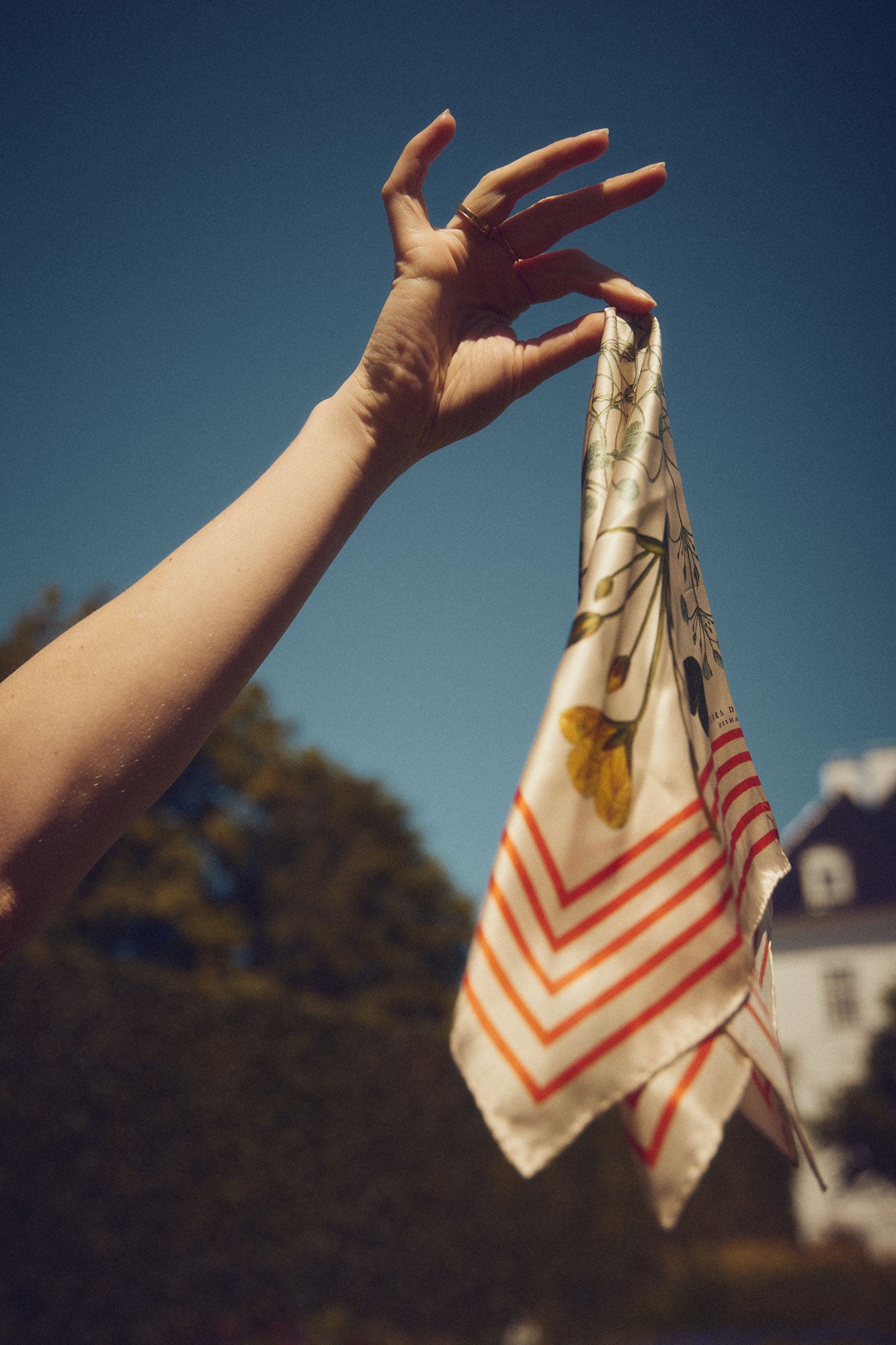 Med udgangspunkt i de originale Flora Danica-illustrationer fra 1700-tallet forener vi botanisk æstetik med moderne design og ægte silke. Hvert tørklæde er skabt som en hyldest til naturens skønhed og til det håndværk, der varer ved.